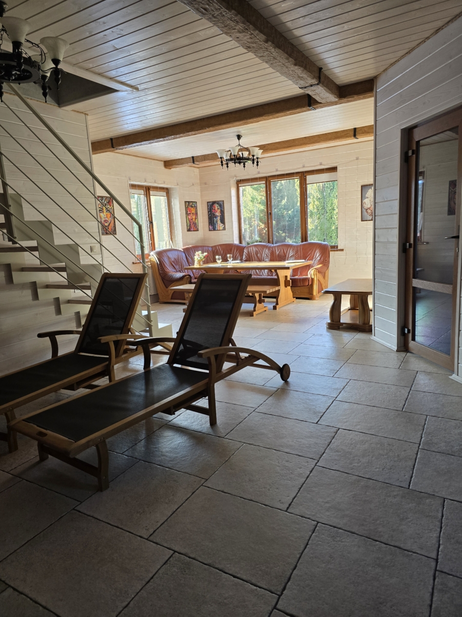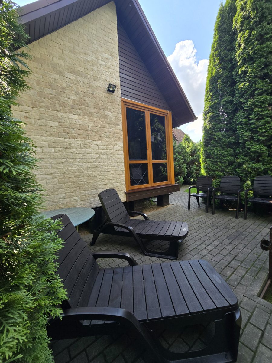 Застекленная терраса с печь-барбекю где в любую погоду можно приготовить кулинарные шедевры начиная от шашлыков до плова и шурпы. Огромная гостинная с камином, большим кожаным диваном и скамьей у дубового стола, удобные шизлонги, стоит прилечь на которые сразу попадаешь в гости к Морфею. Имеется зона кухни со всем необходимым (варочная панель, микроволновка, посудомойка, электрочайник, кухонная утварь, шампуры, решётка, штопор…), душевая, огромная ванна, отдельный санузел, ТВ, Wi-Fi 5G. В домике три спальни открыв окна в которых вы почувствуете дыхание леса. Спальни отделаны деревом, винтажные светильники и бра из гималайской соли придают неповторимый шарм помещениям. На стильных кроватях с ортопедическими матрасами приятно и удобно отдыхать. Сердце домика — это потрясающая сауна на дровах! С сибирским кедром на стенах, абашем на полках и огромной царской печью. В шаговой доступности кострище и мангал в окружении величественных кипарисов. Территория очень зелёная, повсюду огромные туи, можжевельники и капарисовики. Красота, а запах как в Крыму.