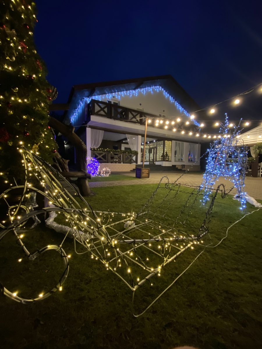 Имеются современные душевые кабины, комната личной гигиены, стильная кухня с яркими акцентами (импровизированный камин, телевизор) и всем необходимым для проживания. Отдыхающие смогут расслабиться и получить удовольствие от банных процедур в настоящей русской бане на дровах. Также к услугам постояльцев огромная летняя терраса, которая вмещает в себя до 80 человек, и зона барбекю.