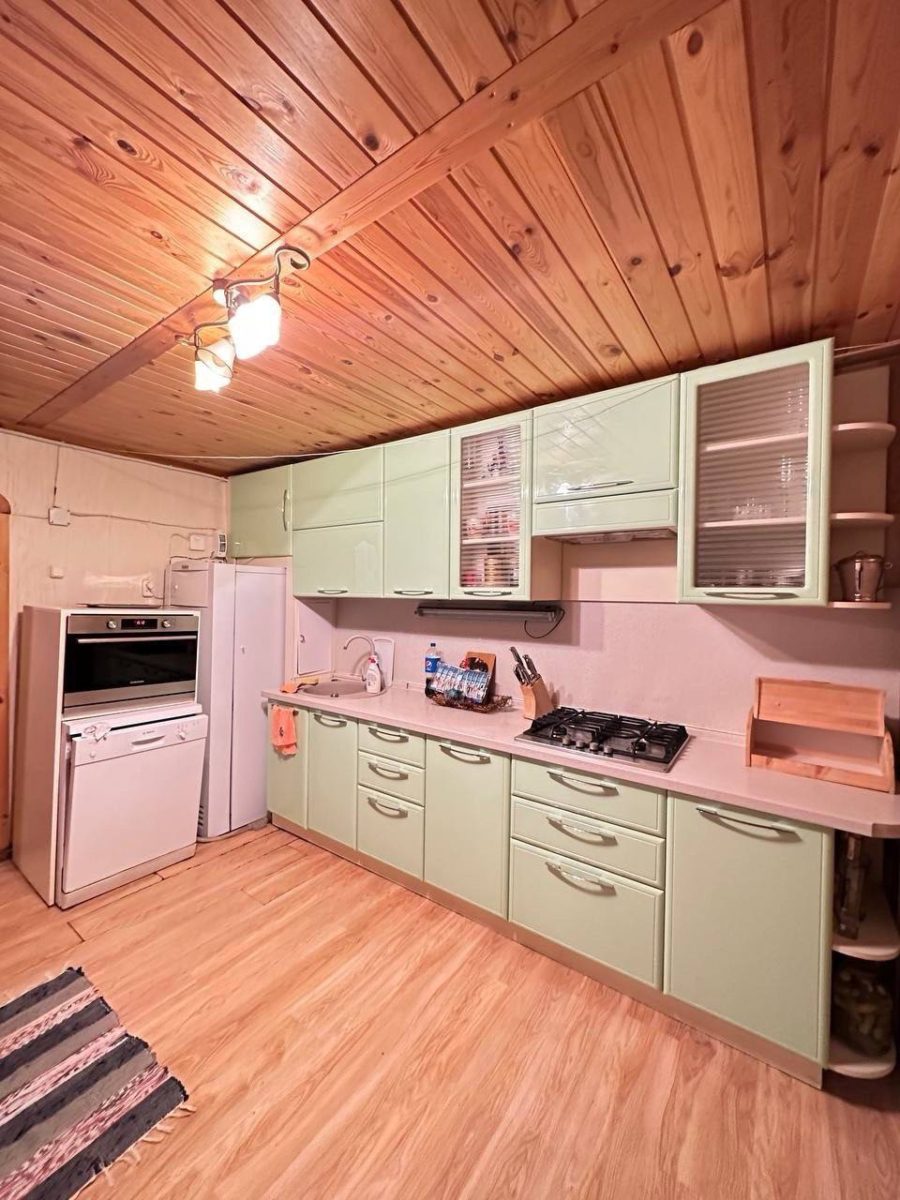 Второй дом оснащён современной кухней, полностью укомплектованной плитой, микроволновой печью, посудомоечной машиной и всем необходимым для комфортного проживания. Просторная гостиная с обеденным столом создаёт уютную атмосферу для отдыха и общения. Также есть диван. Ванная комната оборудована санузлом и джакузи.