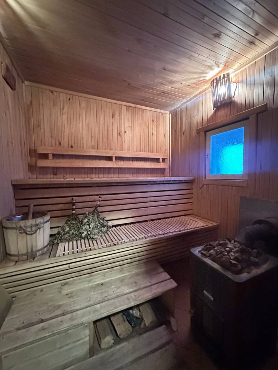 Первый дом дополнительно оборудован крытым бассейном с подогревом, шезлонгами, финской сауной, телевизором и колонкой с караоке — всё для полноценного отдыха и развлечений. На втором этаже находится большая спальня с двуспальной кроватью, двумя односпальными кроватями и детской кроваткой, что делает его идеальным для семей с детьми.