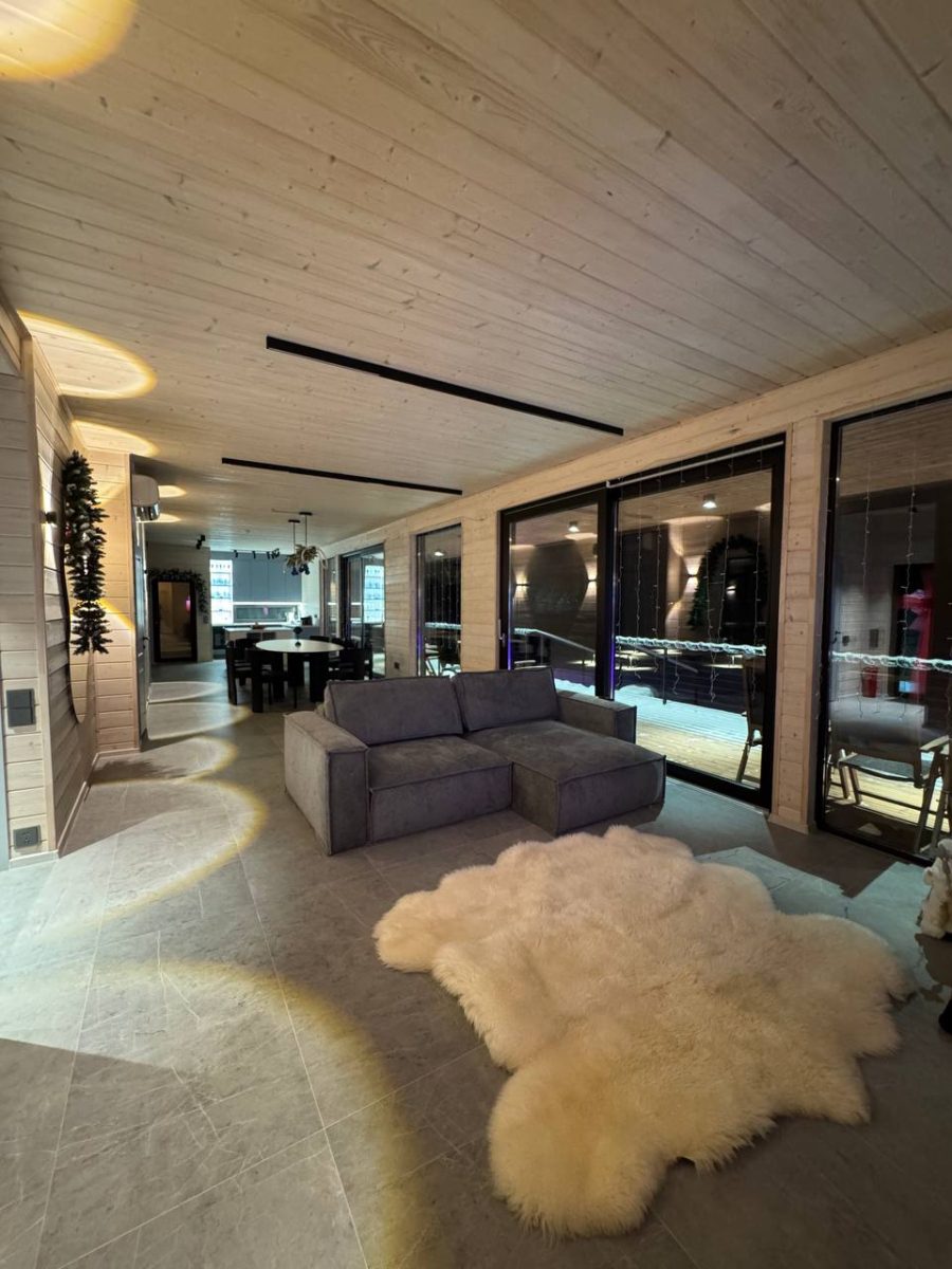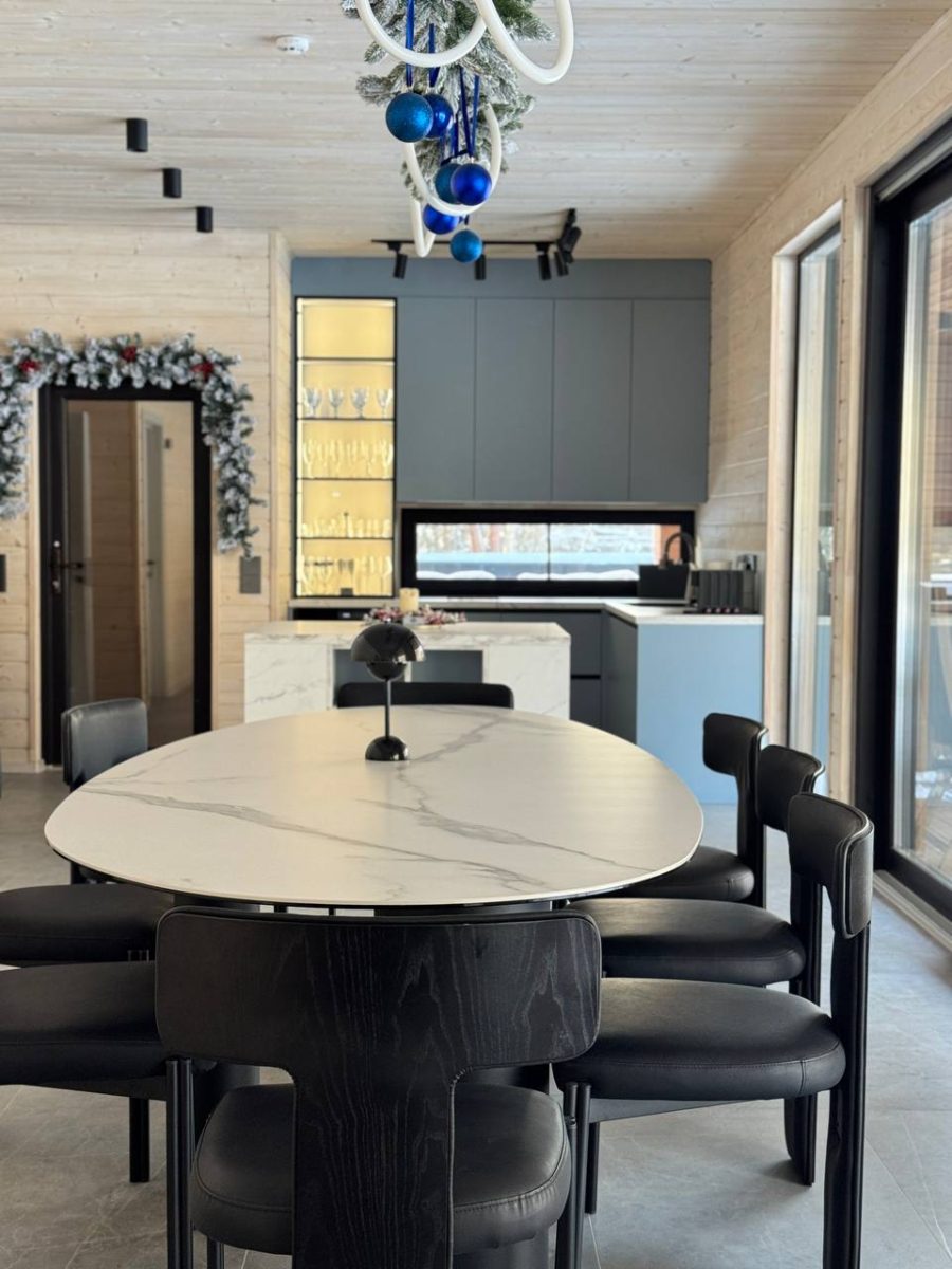 Здесь каждая деталь продумана так, чтобы гости чувствовали себя свободно, спокойно и по-домашнему уютно. Просторная территория, приватная атмосфера и близость к природе создают ощущение настоящего загородного курорта, где время будто замедляется. Интерьеры дома выполнены в современном стиле с элементами уюта и природных акцентов. Светлые пространства, большие окна, качественная мебель и продуманное зонирование позволяют комфортно разместиться как на короткий отдых, так и на несколько дней проживания.